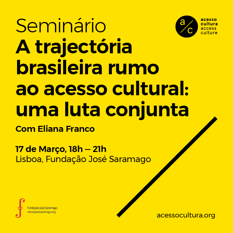 A Acesso Cultura organiza o seminário "A trajectória brasileira rumo ao acesso cultural - uma luta conjunta", com Eliana Franco.